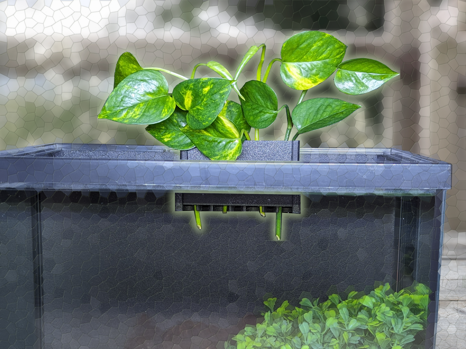 Emersed plant holders that hang on the rim of an aquarium holding...